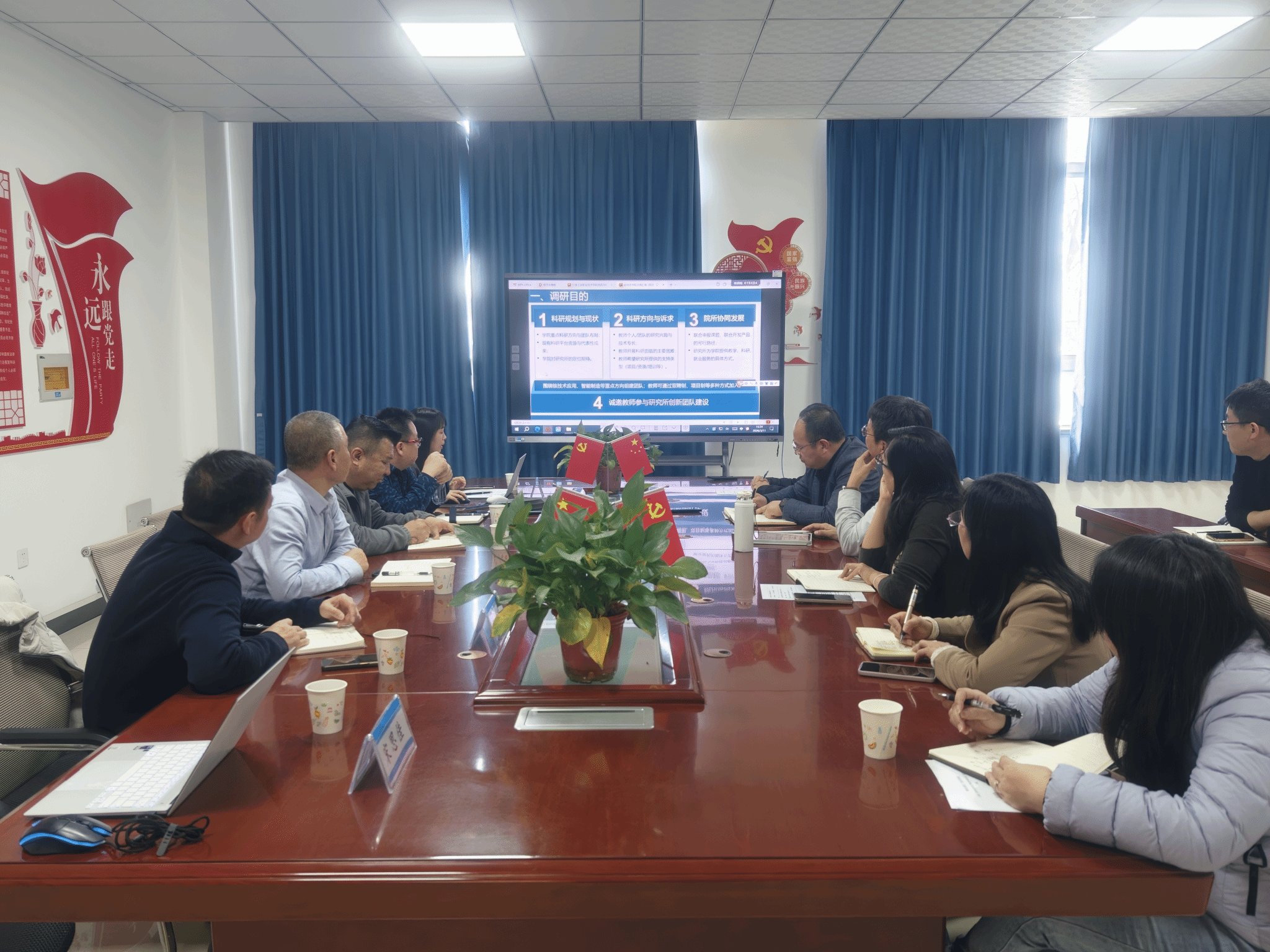 会后,调研双方结合各自发展实际与工作需求,就教学科研创新发展、科研平台资源共享、学生实习实训培养以及人才联合培育等方面展开热烈交流,充分交换了意见、凝聚了共识,为后续开展跨部门科研合作奠定了坚实的基础。